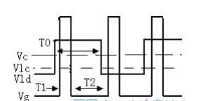 晶体管 TFT 是这样工作的,当 TFT 栅极 G 扫描被选通时,VG被接入一个正高脉冲,此时同步输入选址的源极信号是一个围绕一个中心值为 VC 的永远低于 VG选通脉冲幅值的选址数据电压 VLD,TFT 晶体管被打开。从源极到接通液晶像素的漏极之间呈一通路,电压被加到液晶像素电极和补偿电容电极上。这时即使施加电场撤掉,由于电容作用,其像素上施加的电压也将保持相当时间,直至下次选通的到来。若设置的电容值使其像素选通达半帧时间,同时使下半帧寻址信号以 VC进行反相,则可以实现: