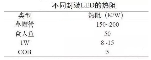 由此可见采用COB技术封装的LED相比于其他封装工艺热阻最小。